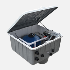 高端的一體化系統,配有PSH循環水泵、砂缸、PSH功能泵、紫外線殺菌燈、鹽氯發生器、潛水泵等